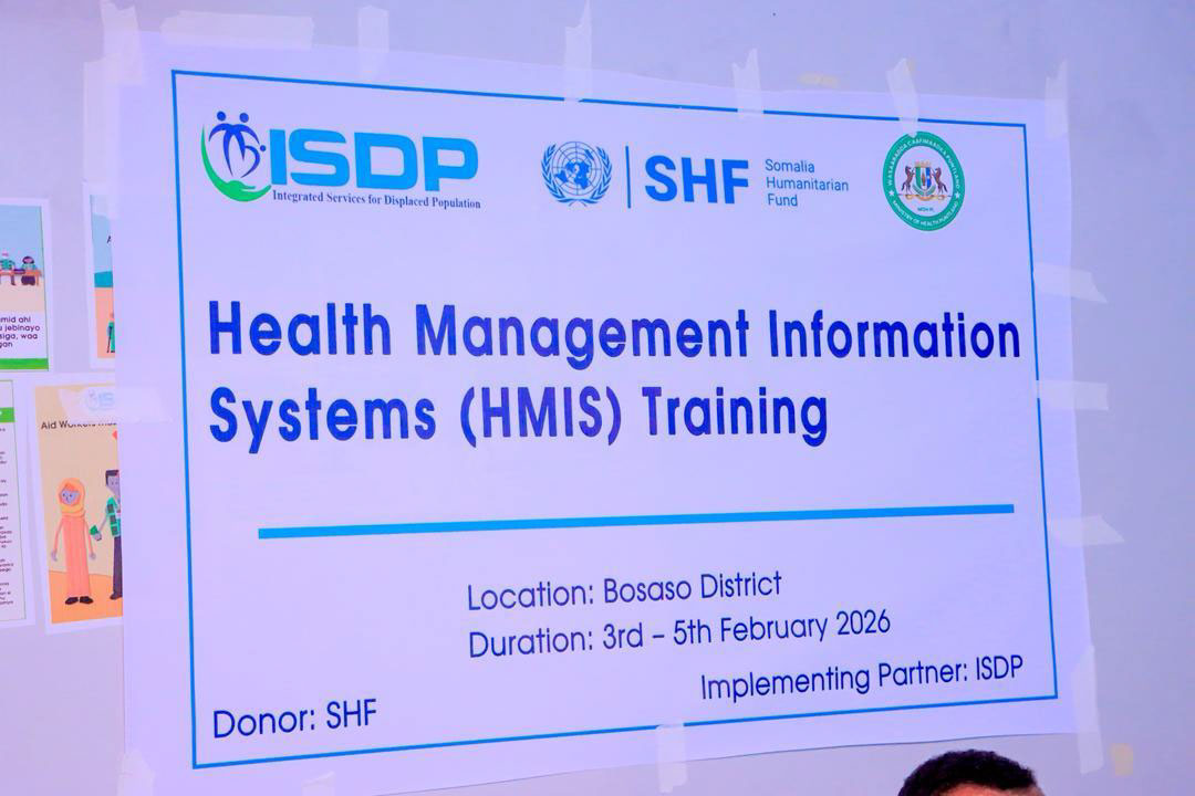 ISDP successfully conducted a 3-day Health Management Information System (HMIS) training in Bosaso, supported by the SHF Emergency Health and Nutrition Project. The training enhanced the capacity of 16 health workers from supported health centers and PHUs to effectively collect, analyze, and report health and nutrition data in line with national guidelines. Using a Training of Trainers approach, participants are now equipped to cascade knowledge and strengthen data management practices at their respective facilities. The training was conducted from 3rd to 5th February 2026, between 8:00 a.m. and 4:00 p.m.